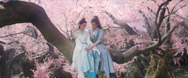 一开场,是男女主坐在桃树上亲吻告白。粉色花瓣漫天飞舞的场景让人以为打开了《三生三世十里桃花》,而后男主一句"不求同年同月同日生,但求同年同月同日死"又把气氛烘托成了《三国演义之桃园结义》。