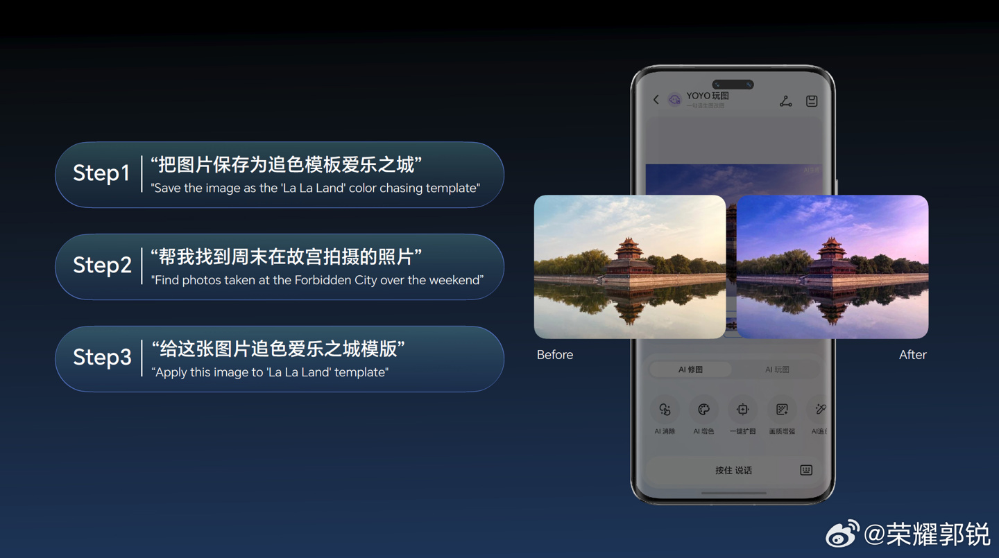 IT之家 9 月 25 日消息,荣耀终端股份有限公司品牌营销总裁、集团首席营销官郭锐今日发文透露360配资网,Magic8 手机将首发一语 AI 追色功能。