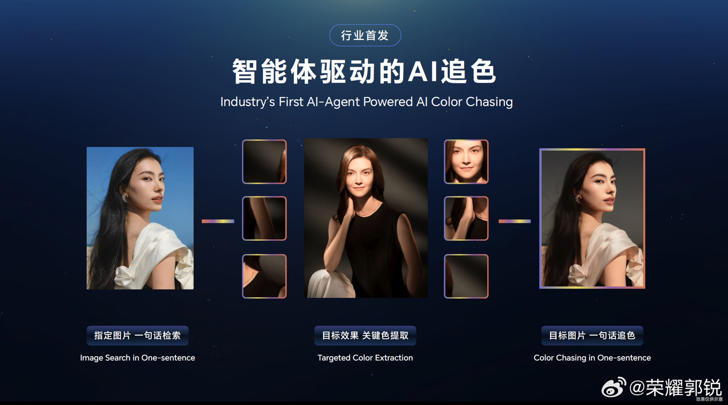 据介绍,荣耀与高通联合研发的高效能端侧 AI 模型方案360配资网,带来了新一代向量化检索技术,以及更准确高效的端侧多模态感知能力。用户只需一句话驱动智能体,就可以实现“检索目标图片、关键色提取、对目标图片精准追色”的一系列动作。